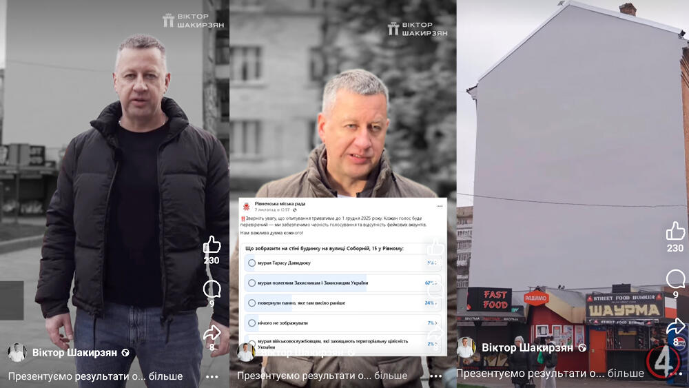 Іще до того, як дізналися про суд щодо мораторію, ми вирішили з’ясувати, яка ситуація зі створенням «спільного» муралу загиблим Захисникам і Захисницям. Відповідно до результатів опитування у фейсбуці, яке оголосив в.о. міського голови Віктор Шакирзян, за такий мурал проголосували 4 тисячі 977 людей, або 62% опитаних.