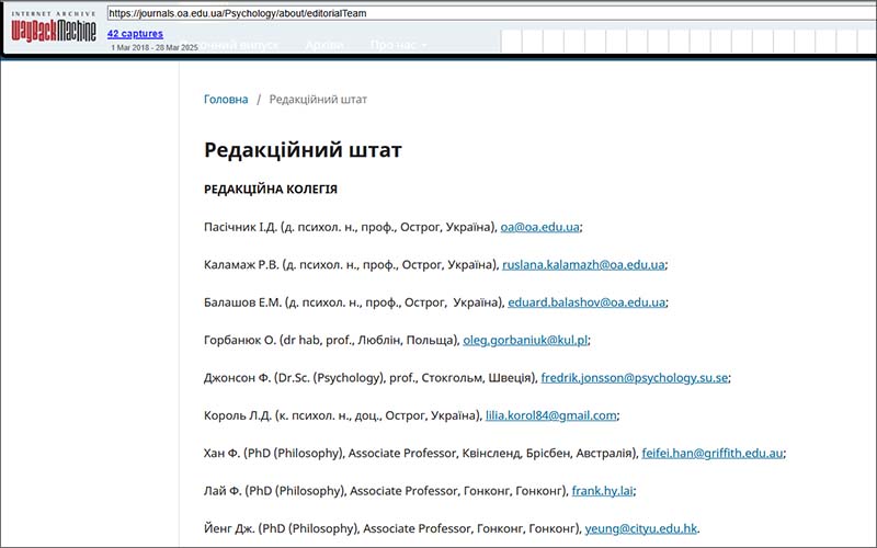 Усім ставив одне й те ж питання: «Ваше ім’я вказано серед членів редколегії “Наукових записок” із психології – журналу, що видається українським Національним університетом “Острозька академія”. Чи справді ви належите до цієї редколегії?»