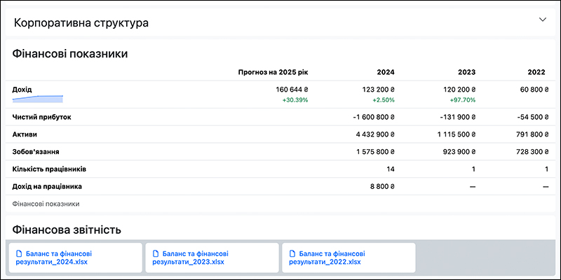 За доступною фінансовою звітністю, фірма мінімум з 2021 року була збиткова, у 2024-му році розмір збитку сягнув більше півтора мільйона гривень.
