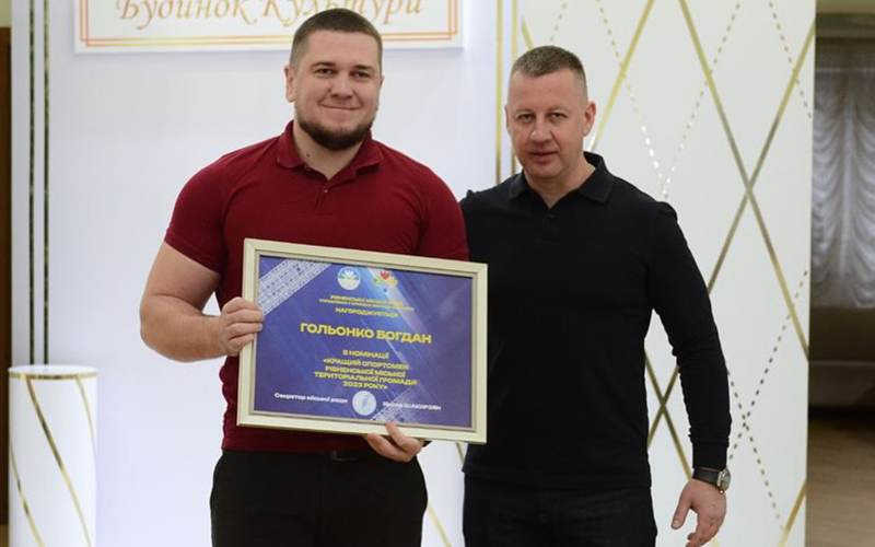 Співвласник ТОВ «Фіш Рівне» Богдан Гольонко має бронювання до 12 грудня 2026 року. Ми з'ясували, що він – спортивний тренер в Рівному, колишній працівник Рівненського слідчого ізолятору та один із співзасновників ГО «Міжнародна школа фітнесу і танцю». На змаганнях з пауерліфтингу нагороду приймав у футболці з написом «Рівне разом», а з перемогою та рекордом його вітав в.о. міського голови Рівного Віктор Шакирзян.