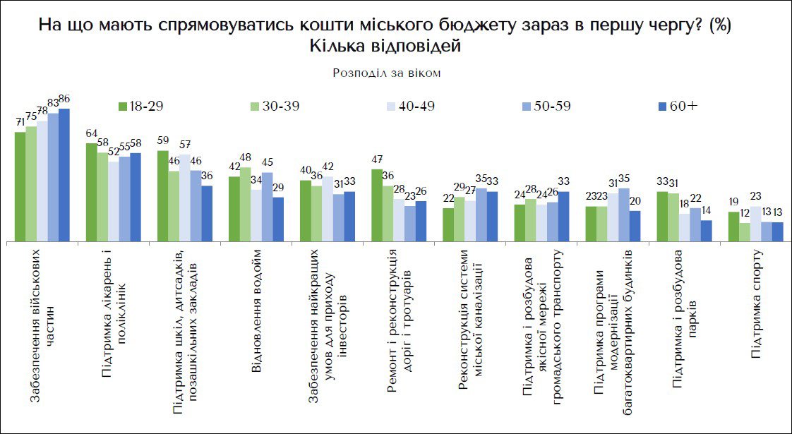 У 2025 році опитуваним поставили одне питання, на яке можна було дати кілька відповідей: на що влада має спрямовувати кошти в першу чергу. І лідери підтримки фактично залишилися тими самими.
