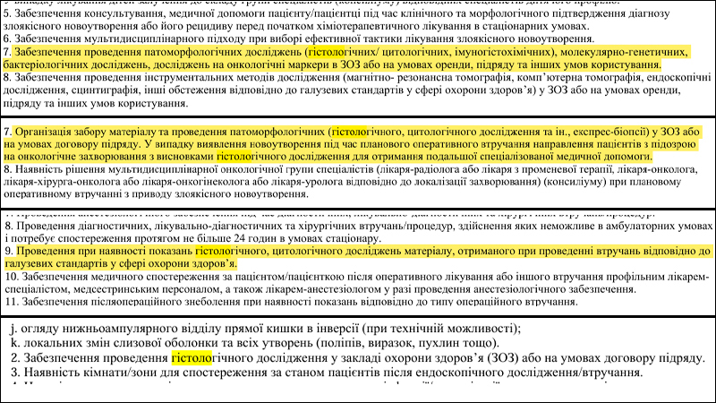 Тобто гістологію в протипухлинному мають робити пацієнтам безоплатно, якщо вони отримують там медичну допомогу за наступними пакетами:
