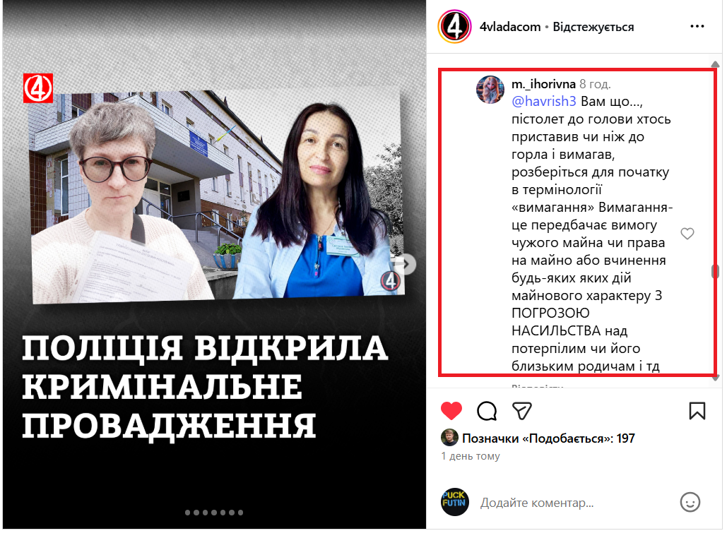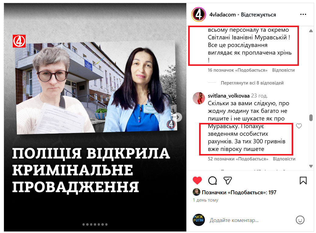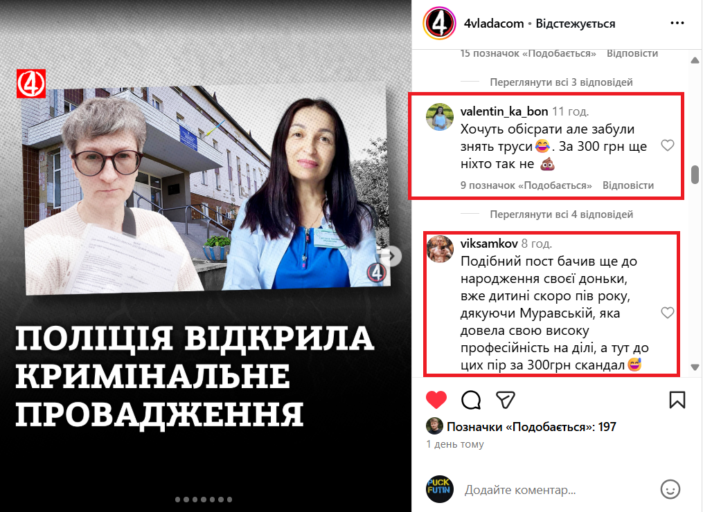В горталці – частина скринів з хейтерськими або претензійними коментарями: