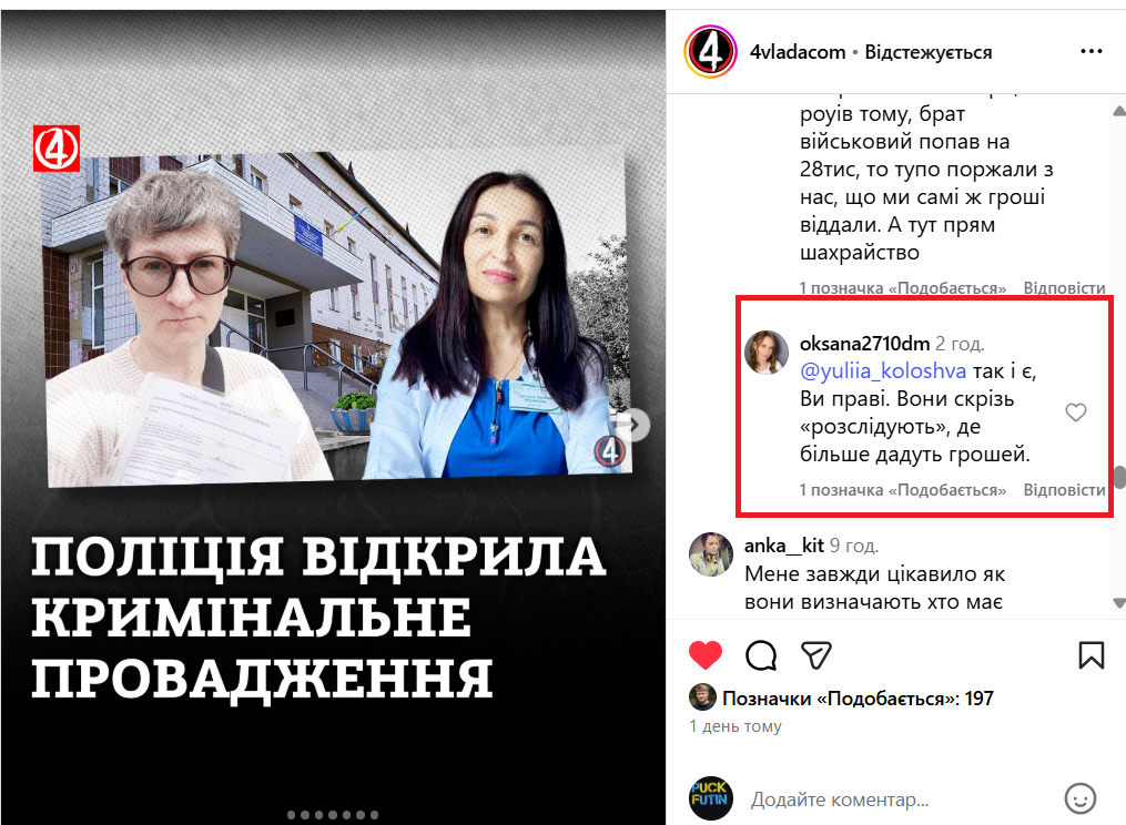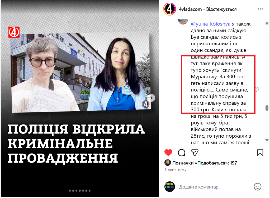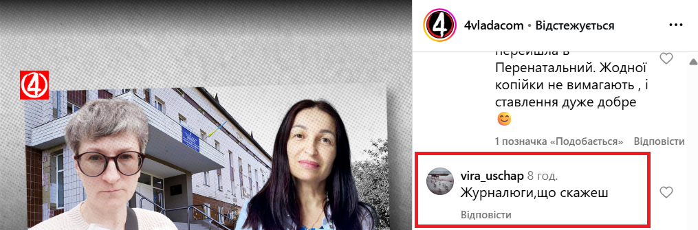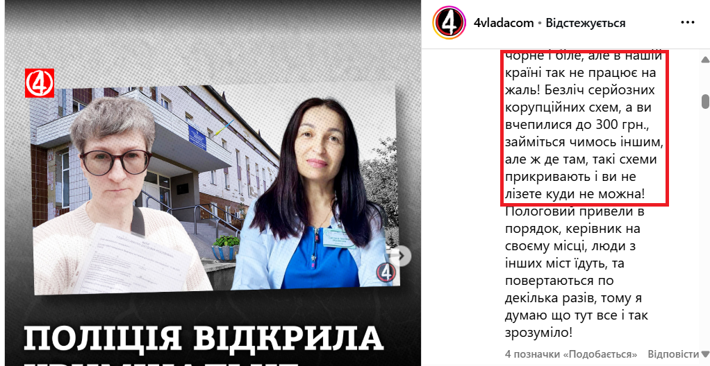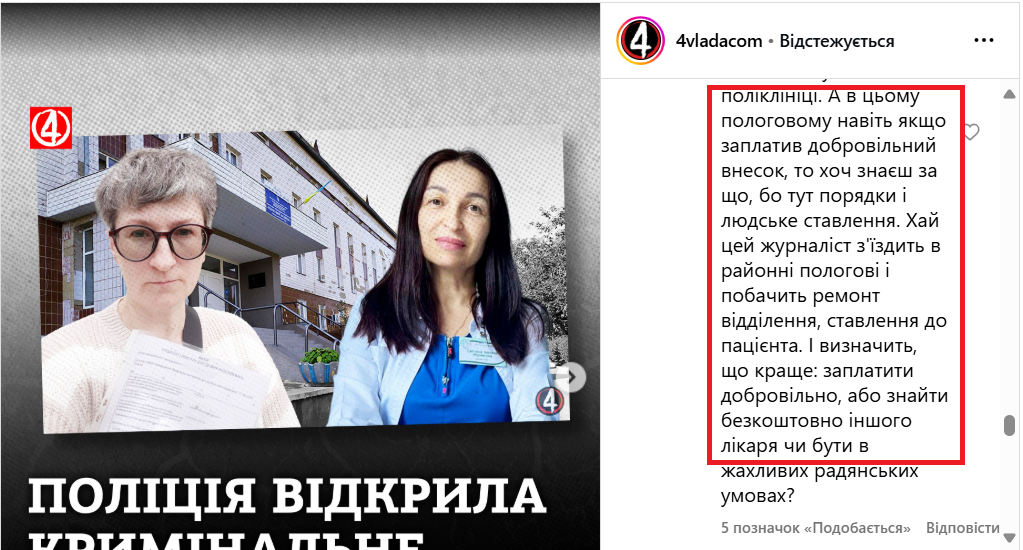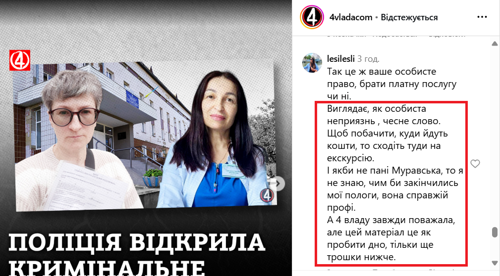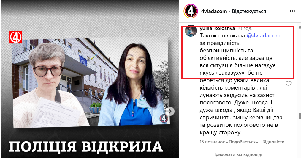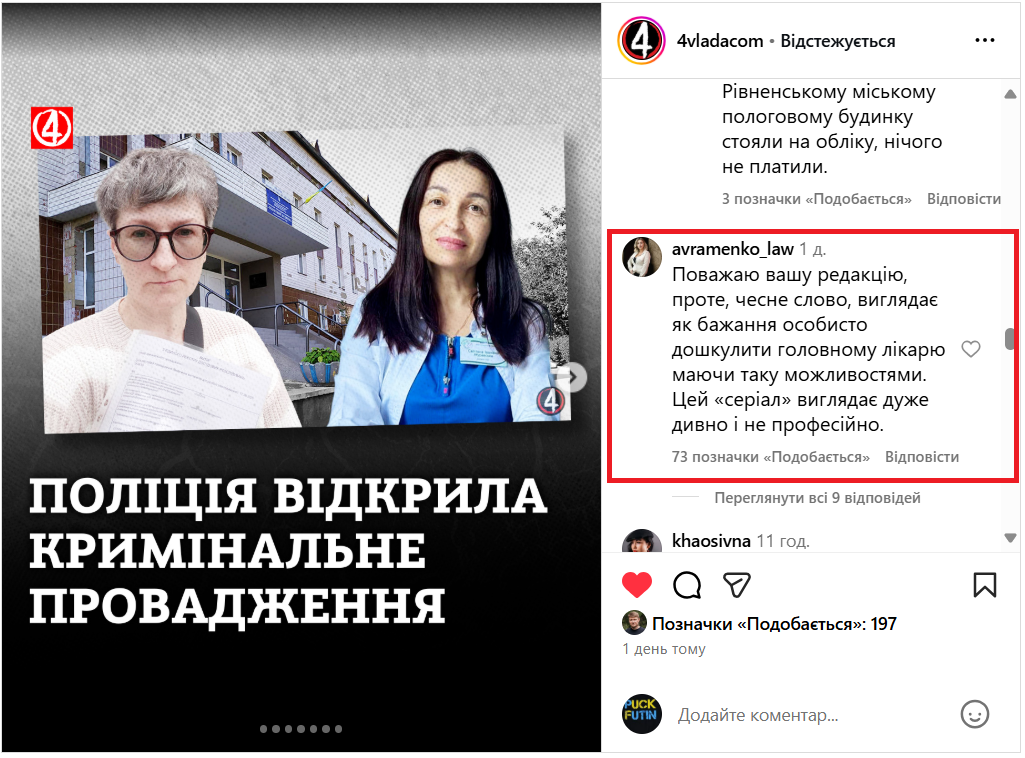 Минуло приблизно півтори доби від моменту появи в інста-профілі «Четвертої влади» повідомлення про новину, що поліція відкрила провадження про ймовірне порушення права на безоплатну медичну допомогу в рівненському міському пологовому будинку. За моєю заявою, яку допомогли скласти юристи з BIHUS.Info.