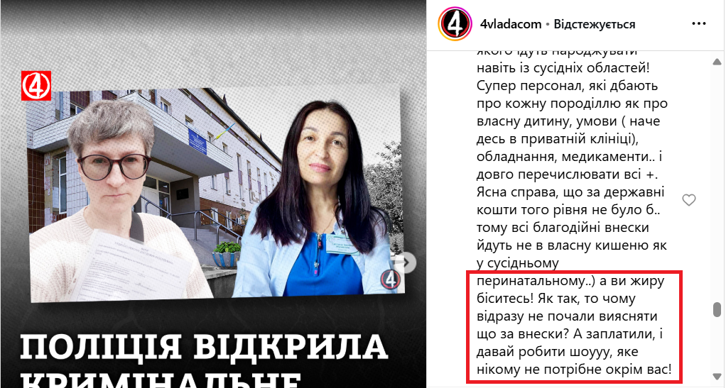 З коментарів до посту я дізналася, що я маю вспокоїтися, бо, викриваючи якісь махінації з мільйонними благодійними внесками і намахування пацієнтів пологового з правом на безоплатну меддопомогу, я, виявляється: